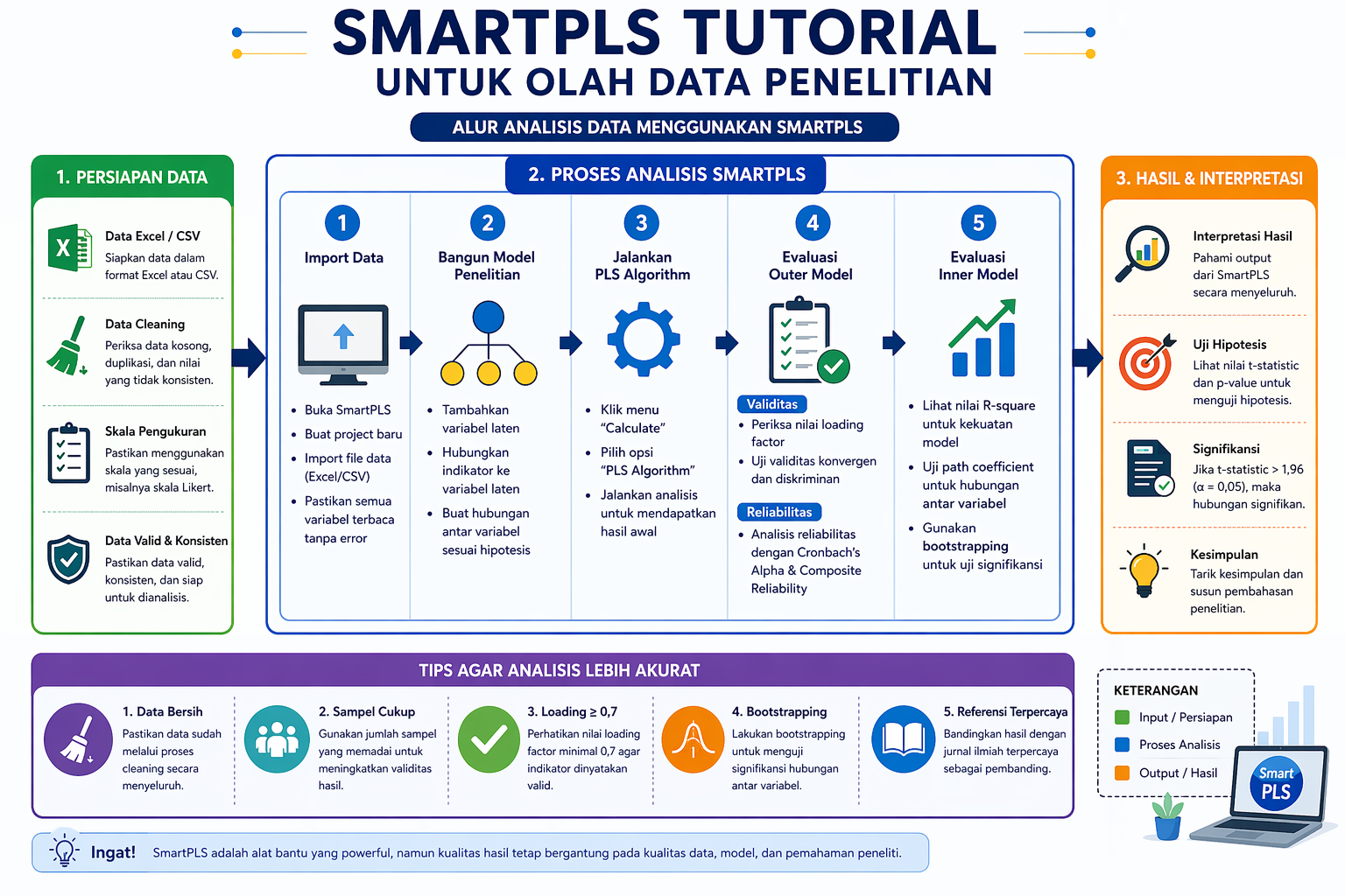 Agar hasil analisis menggunakan SmartPLS benar-benar akurat dan dapat dipertanggungjawabkan, peneliti perlu memperhatikan beberapa aspek penting dalam proses pengolahan data. Tidak hanya fokus pada penggunaan software, tetapi juga pada kualitas data dan ketepatan metode yang digunakan. Dengan memperhatikan langkah-langkah berikut, hasil penelitian akan menjadi lebih valid dan reliabel.