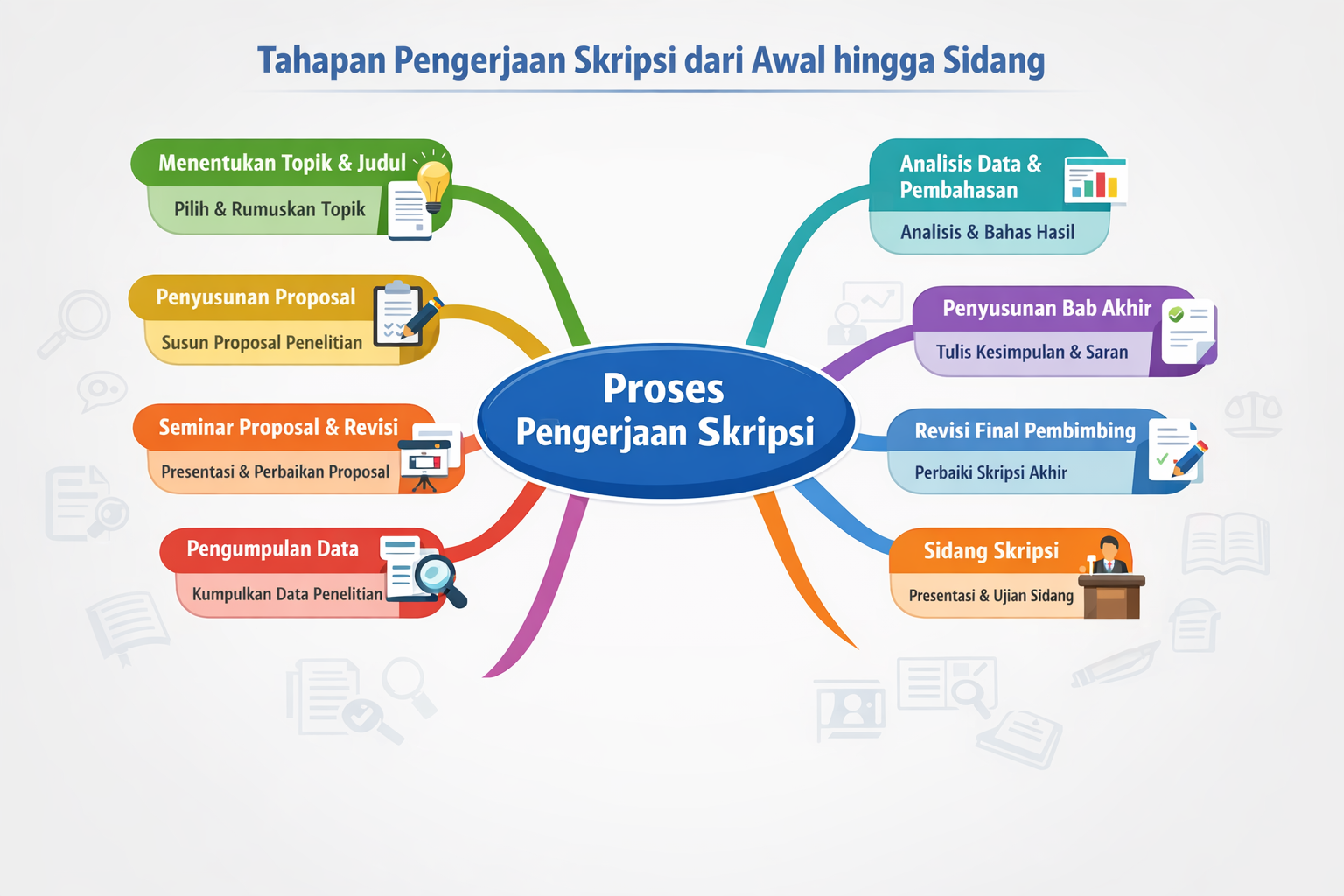 Dengan memahami setiap tahapan secara lebih rinci dan menjalankannya secara konsisten, mahasiswa dapat mengelola proses pengerjaan skripsi dengan lebih terarah, efektif, dan memiliki peluang lebih besar untuk menyelesaikannya tepat waktu.