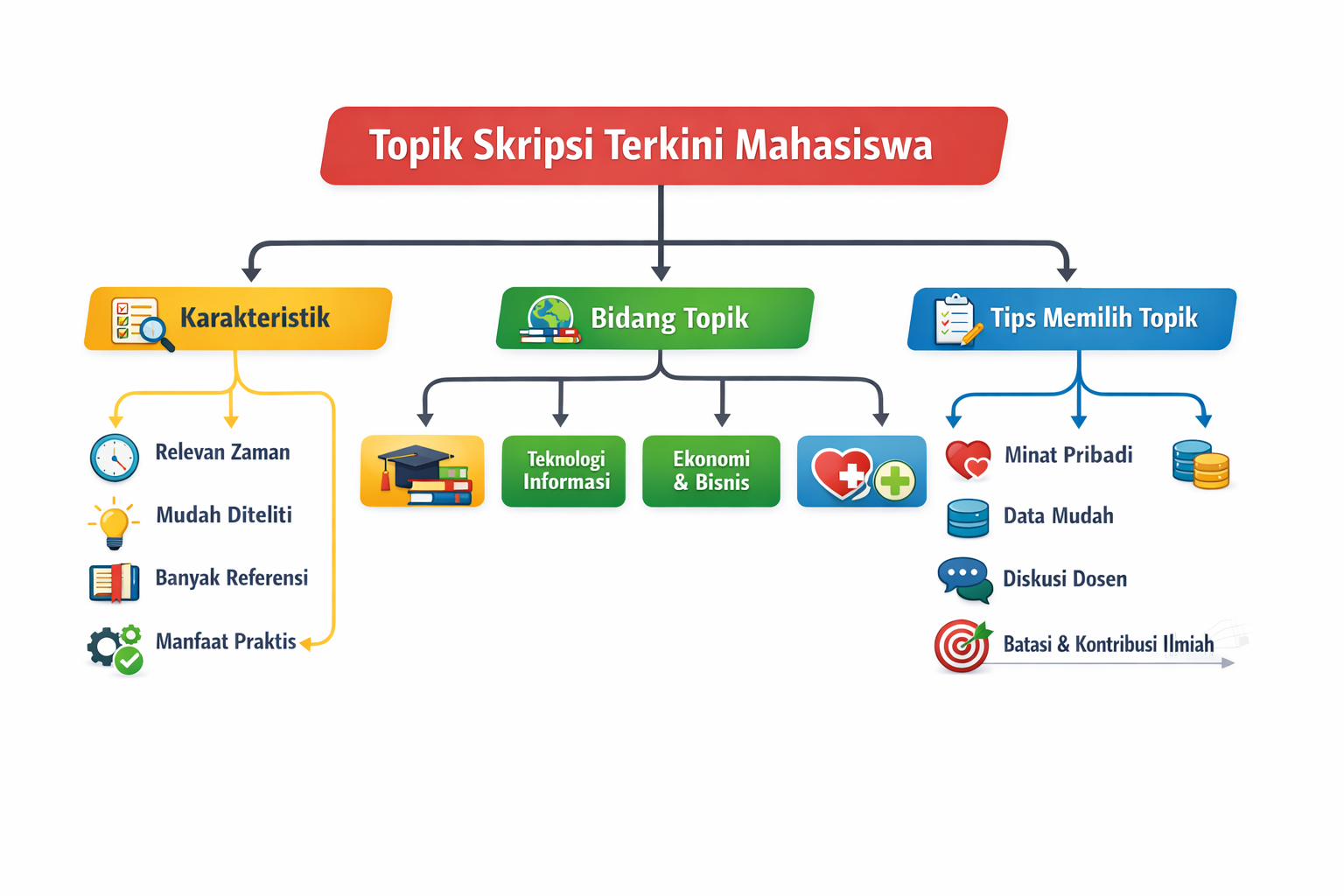 Sebelum menentukan topik skripsi, mahasiswa perlu memahami karakteristik umum dari topik yang banyak diminati. Dengan memahami hal ini, proses pemilihan topik akan menjadi lebih terarah dan efektif. Selain itu, karakteristik ini juga dapat menjadi acuan untuk menilai apakah suatu topik layak untuk dijadikan penelitian atau tidak.
