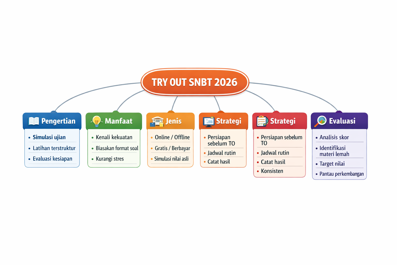 Pemilihan try out yang tepat akan membuat proses latihan menjadi lebih efektif, terarah, dan berdampak nyata terhadap peningkatan skor. Pada akhirnya, memahami jenis-jenis simulasi ini membantu siswa tidak hanya sekadar berlatih, tetapi juga menyusun langkah strategis menuju keberhasilan dalam SNBT 2026.