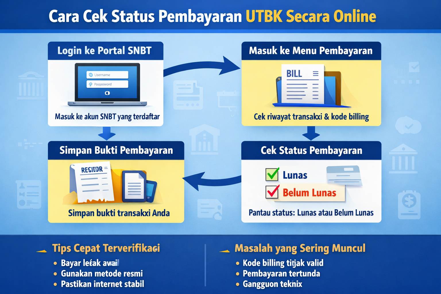 Pendaftaran UTBK merupakan tahap krusial bagi calon mahasiswa karena menentukan kelanjutan proses seleksi masuk perguruan tinggi. Namun, langkah penting yang sering terlewat adalah memastikan pembayaran telah terverifikasi. Padahal, tanpa konfirmasi yang jelas, peserta berisiko tidak dapat mengikuti ujian meskipun sudah melakukan transaksi. Oleh karena itu, mengetahui cara cek status pembayaran UTBK secara online menjadi hal yang tidak boleh diabaikan.